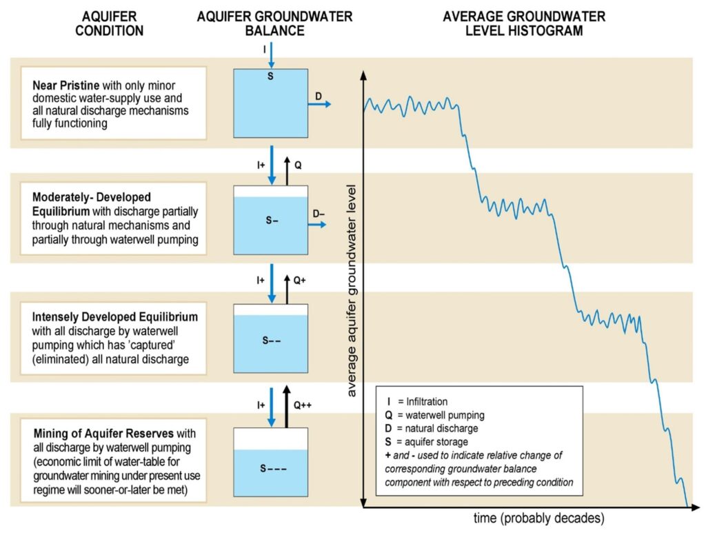 - The definition of physical sustainability when it comes to groundwater, given the vast natural storage of most aquifer systems (Figure 1), and dynamically stable groundwater exploitation over human time scales (50-100 years);