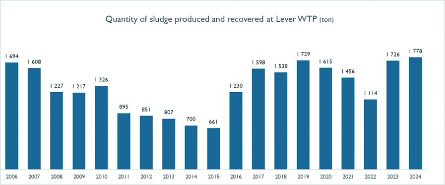On average, the sludge produced at Lever WTP has the following characteristics: